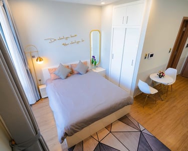 Căn hộ Studio với đầy đủ các tiện nghi và tầm view đẹp hướng đại lộ Thăng Long. Giao thông thuận lợi tiếp giáp nhiều trục đường lớn.