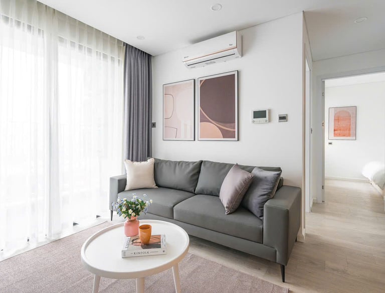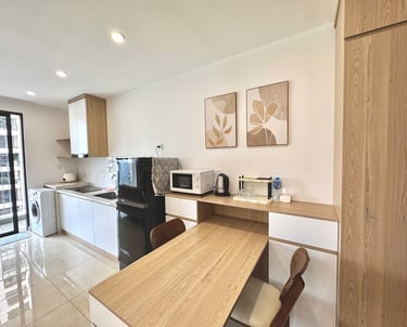 bàn là, máy giặt, smart tv có youtube premium và netflix, điều hoà 2 chiều, bàn làm việc, wifi