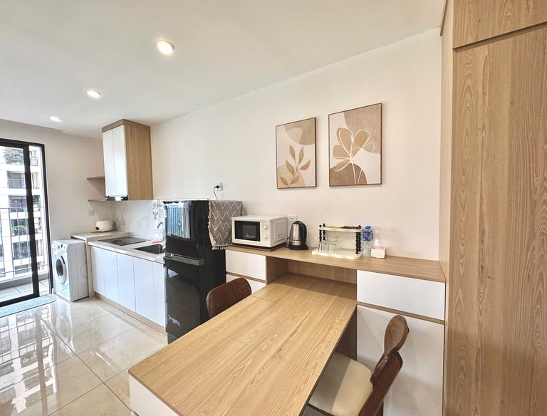 Căn hộ studio với đầy đủ các tiện nghi và tầm view đẹp hướng đại lộ Thăng Long. Giao thông thuận lợi tiếp giáp nhiều trục đường lớn.